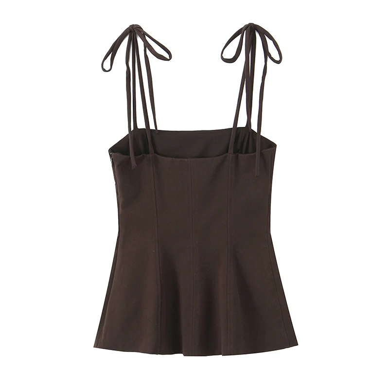 Be the first to review “Willshela Women Fashion Brown Backless Bow Lace Up Side Zipper Camis Vintage Thin Straps Square Collar Female Chic Lady Tops”