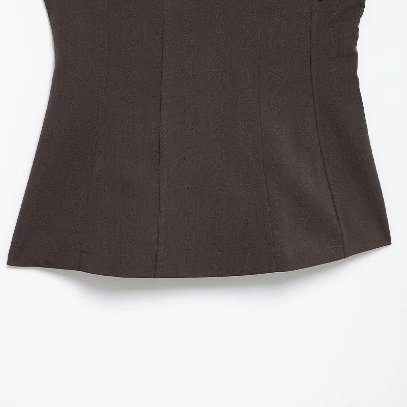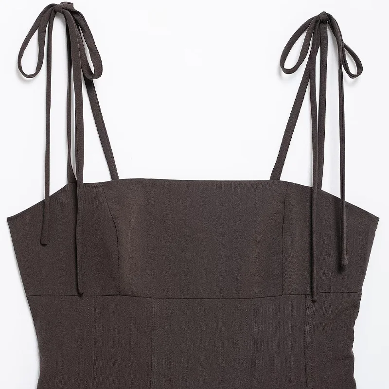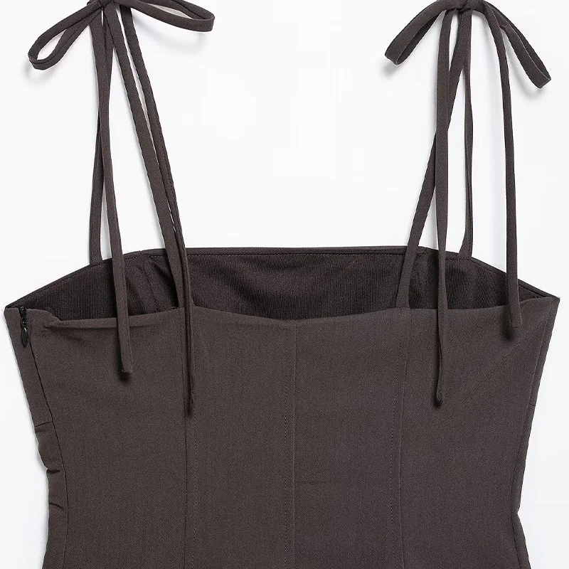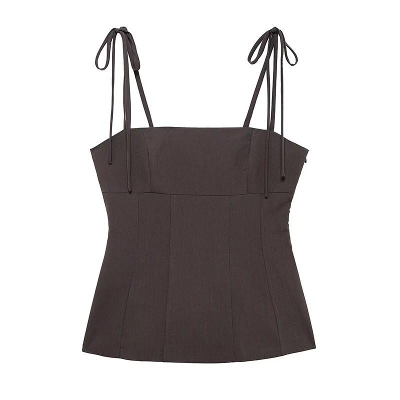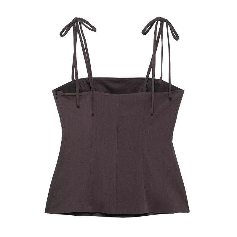 Be the first to review “Willshela Women Fashion Brown Lace Up Backless Side Zipper Tops Vintage Thin Straps Square Collar Female Chic Lady Top”