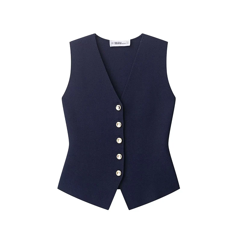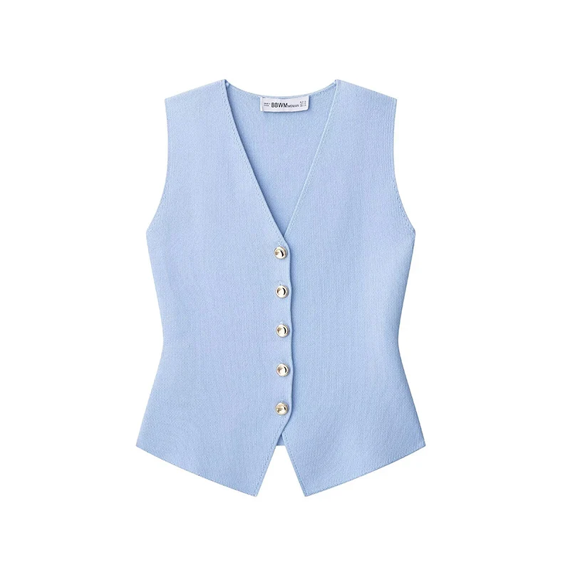 Willshela Women Fashion Solid Single Breasted Knitted Vest Tank Tops Vintage V-Neck Sleeveless Female Chic Lady Top