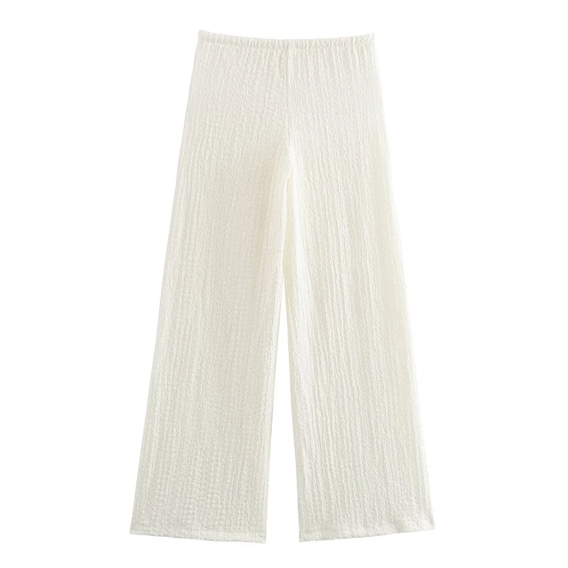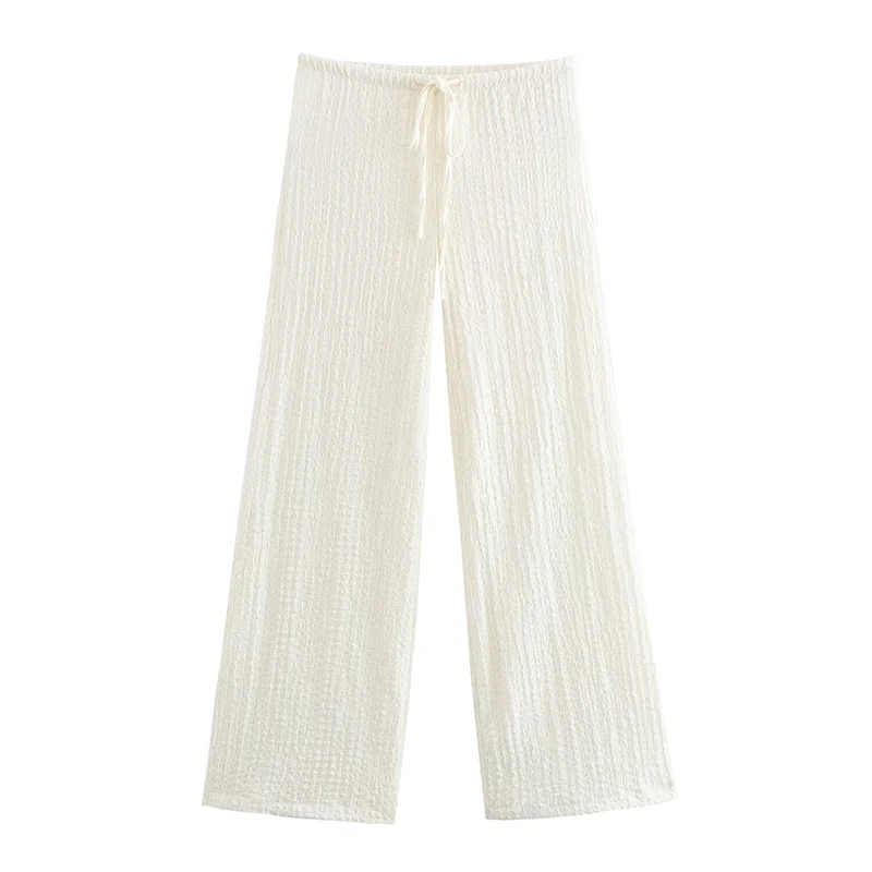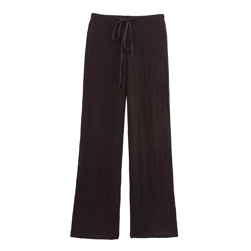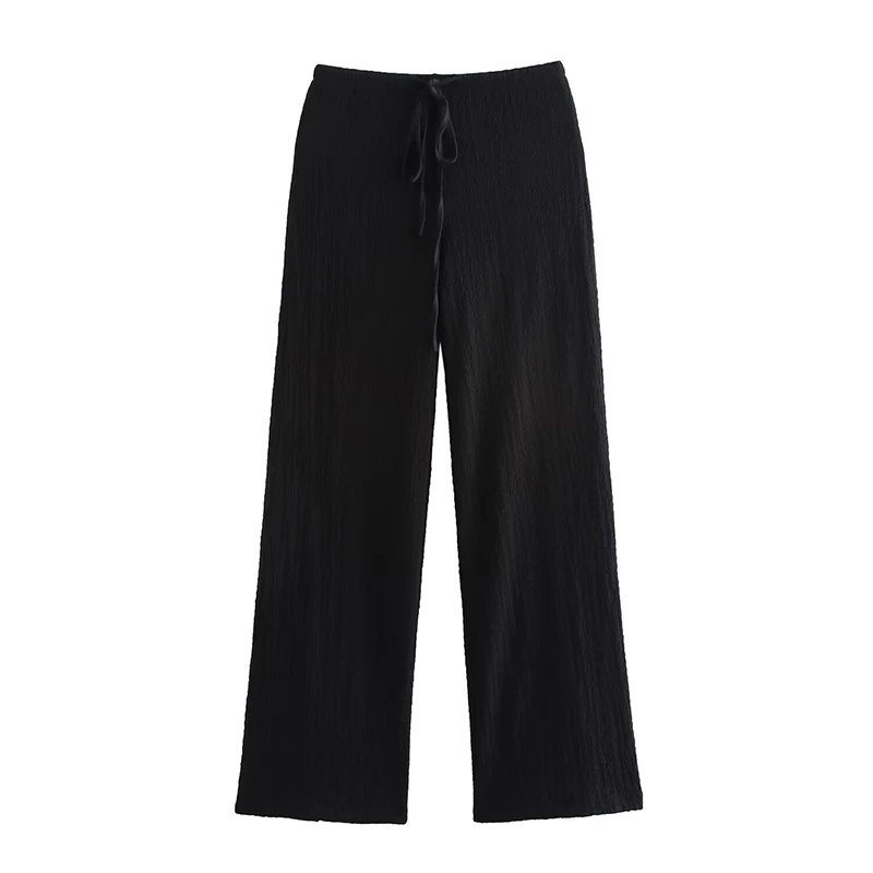 Willshela Women Fashion Texture Solid Drawstring Straight Pants Vintage High Elastic Waist Full Length Female Chic Lady Trousers