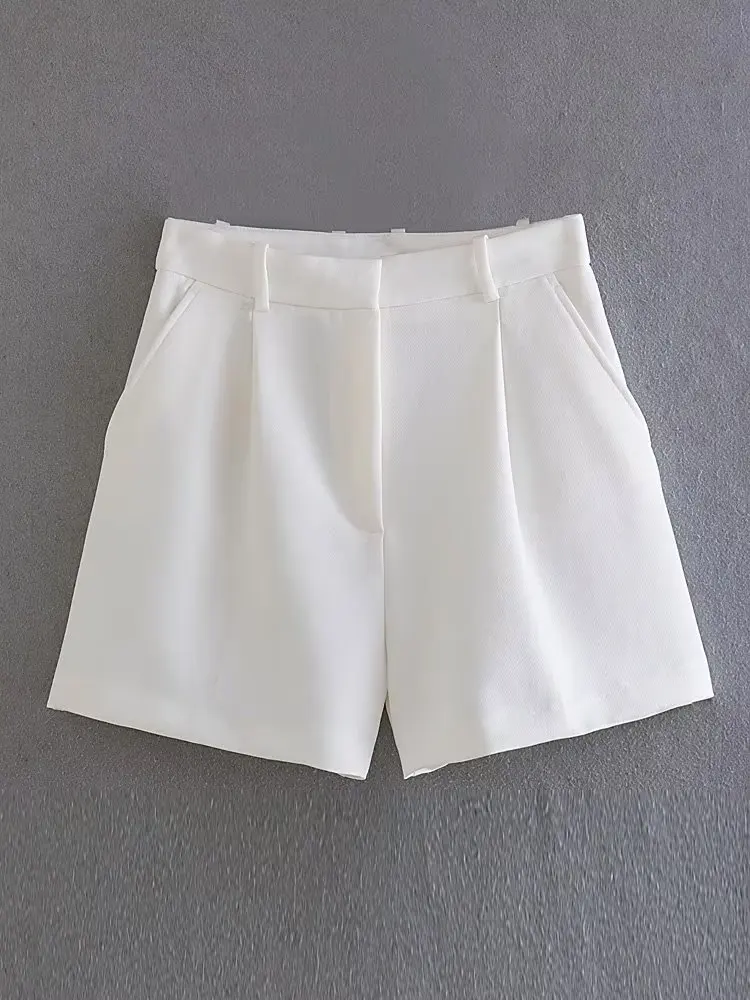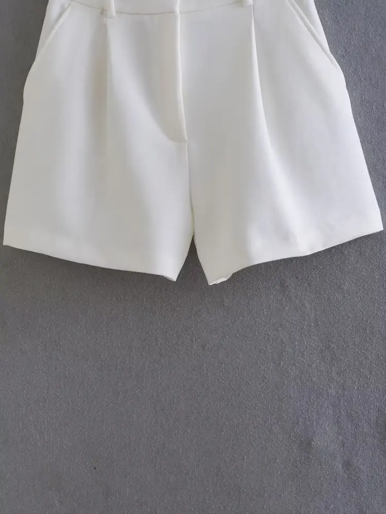 Willshela Women Fashion White Pleated Front Zipper Shorts Vintage High Waist Female Chic Lady Shorts