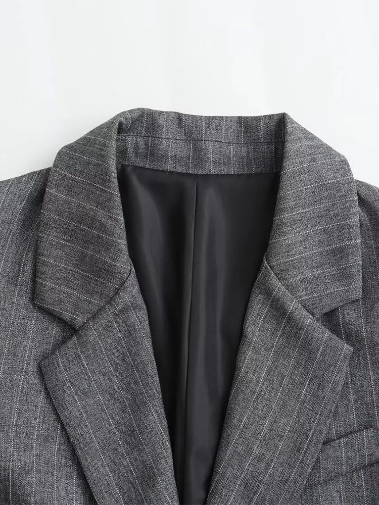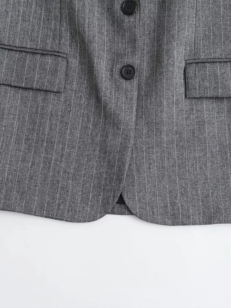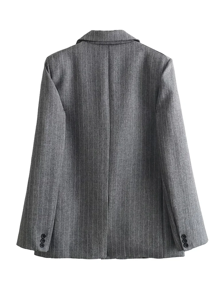 Willshela Women Fashion With Pockets Striped Single Breasted Blazer Vintage Notched Neck Long Sleeves Female Chic Lady Outfits