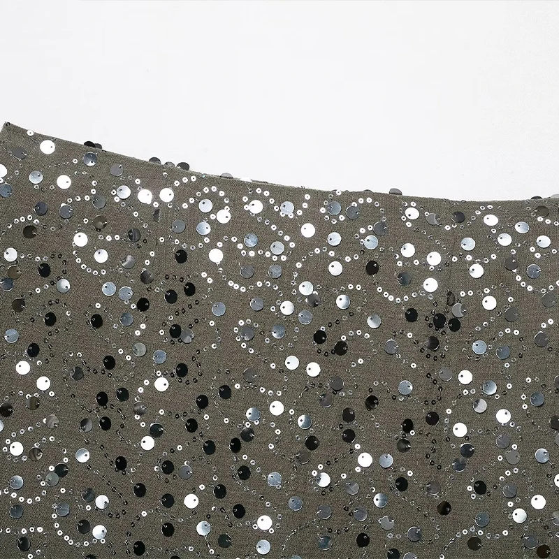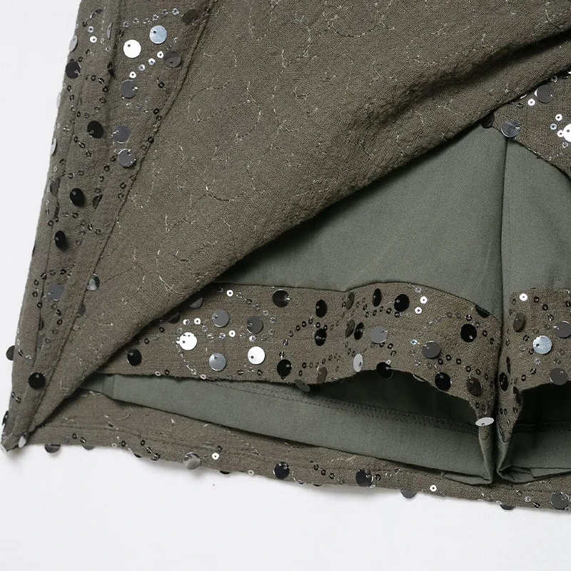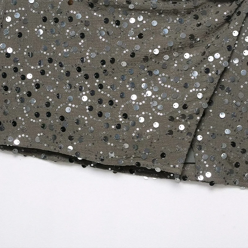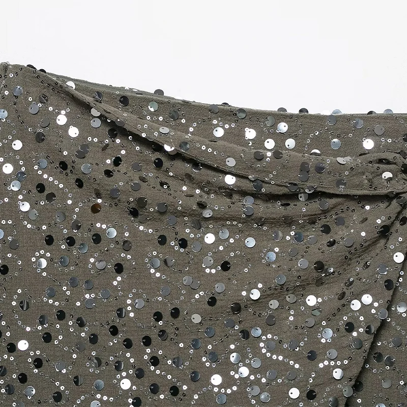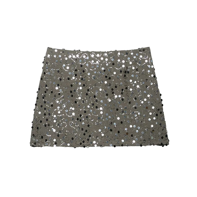 Willshela Women Fashion With Sequined Side Zipper Asymmetrical A-Line Mini Skirt Vintage High Waist Female Chic Lady Skirts